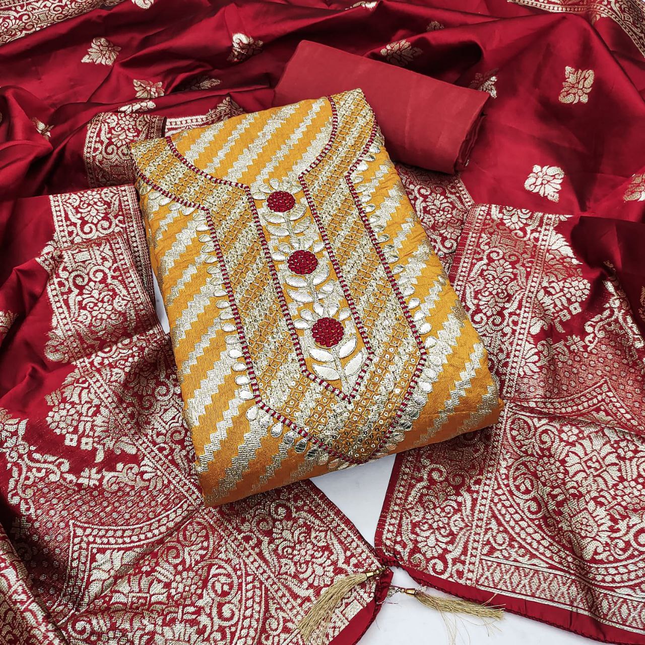 This dress material allows you to stitch the outfit according to your preferred style and fit, making it perfect for weddings, festivals, parties, and family functions.